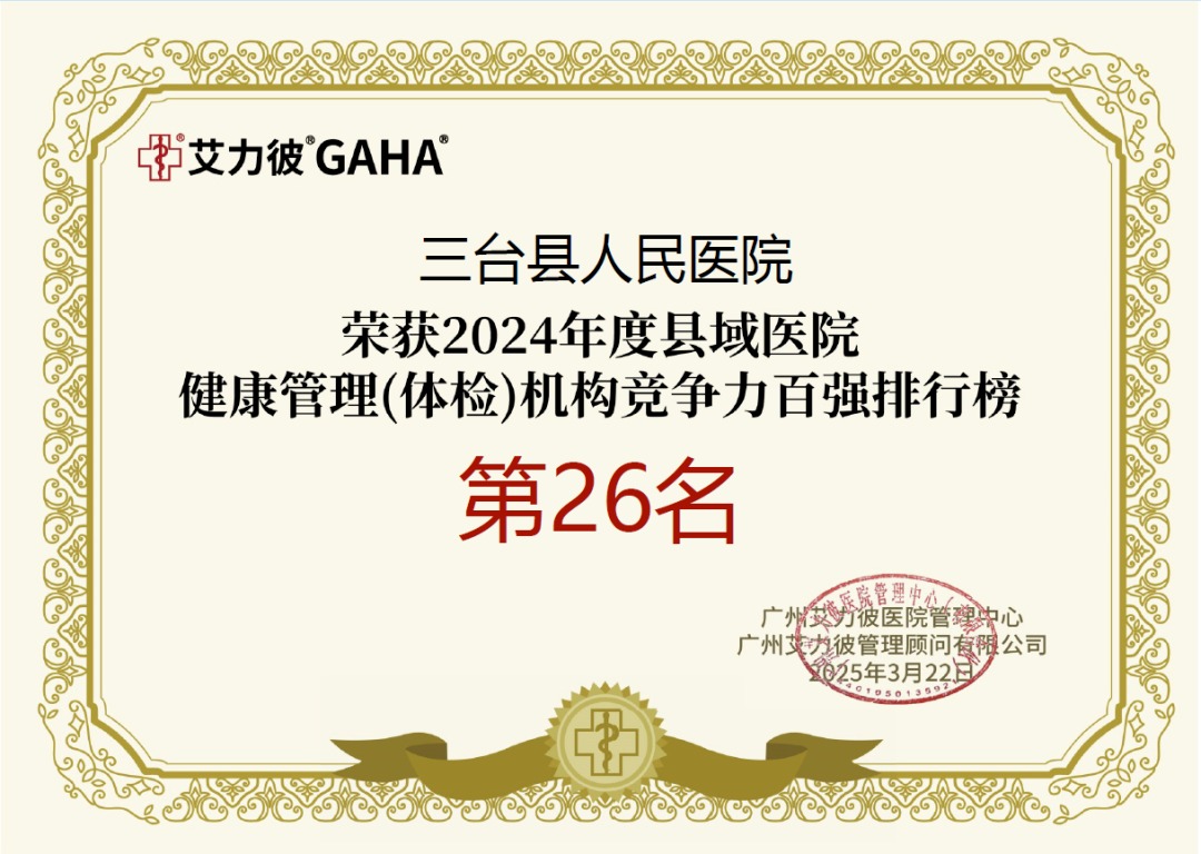 縣域前列 全省第三 | 三台縣人民(mín)醫(yī)院跻身2024年全國(guó)健康管理(lǐ)百強Top30